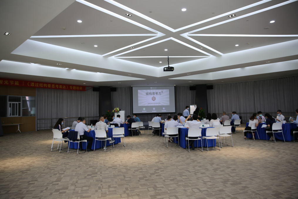 系列活動的第一場,智光節能請進來前程無憂舉辦《透過結構看思考表達》專題培訓。授課老師趙老師具備近20年企業管理實踐經驗,授課內容理論結合實際,通過案例分析、視頻講解、課堂互動等靈活多樣的方式,詳細闡述了結構思考力的理解——重構——呈現三個步驟以及在工作中的運用,引導參培人員跳出固有的經驗和思維,培養嚴格的結構思考習慣,學會在職場中如何做到思考清晰、表達有力、行動有效。