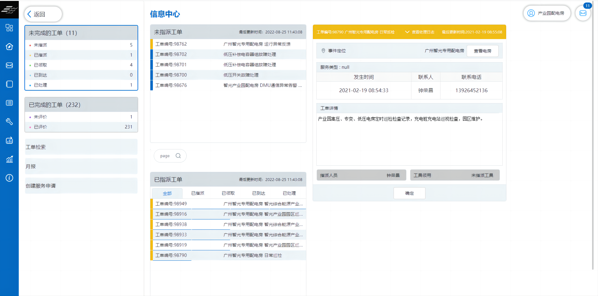 實時推送設備事件及告警信息至APP或短信,為用戶提供全天候無延遲的設備監護。推送由用戶設置的閾值觸發,可在觸發的同時聯動拍照或錄像。事件和告警信息可以與工單系統對接,進行生成、派送、處理、關閉工單,掌握事件處理進度及人員工作安排。