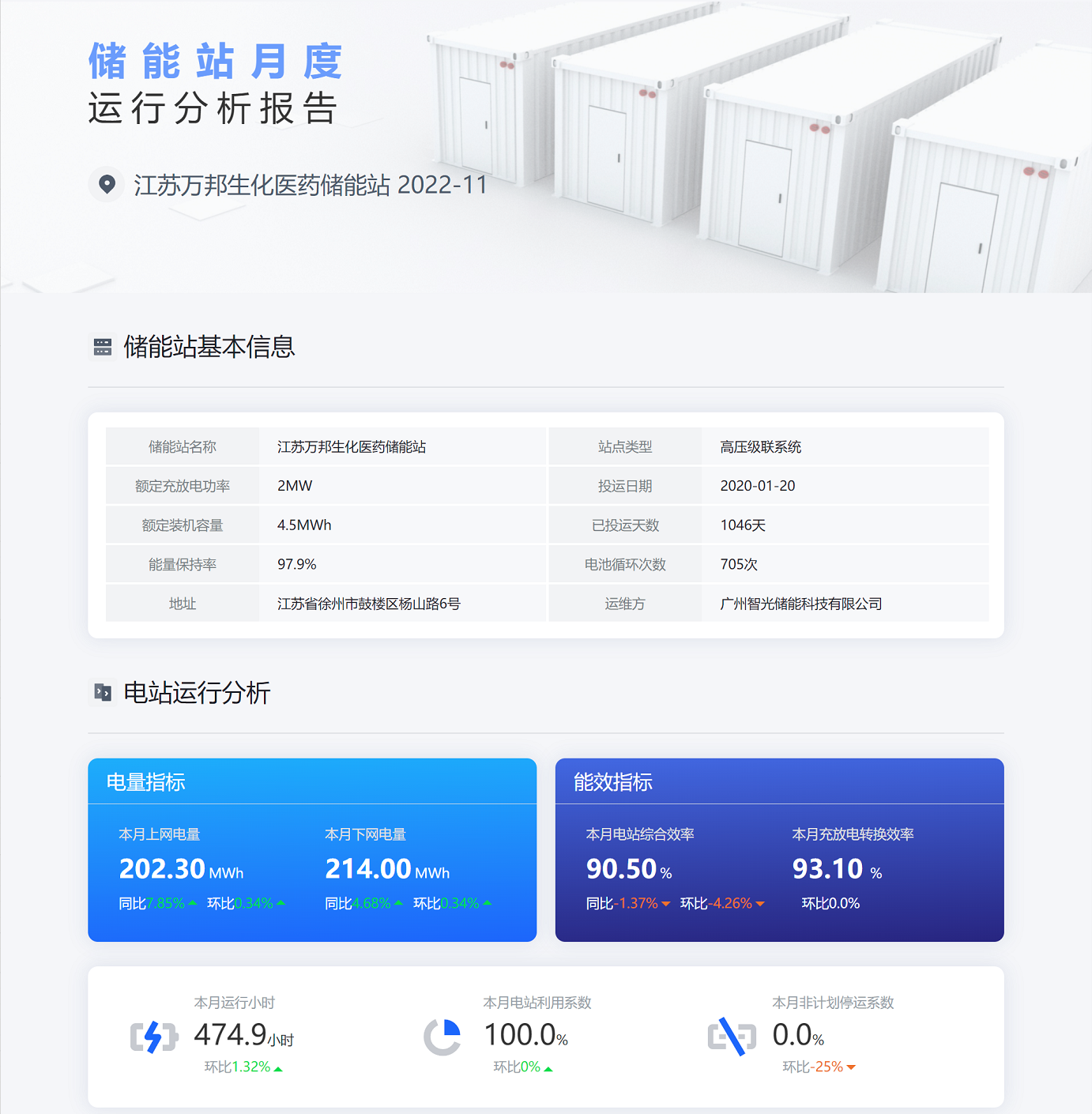 自動生成電站運行分析報告,對儲能站整體運行數(shù)據(jù)、故障告警、電池健康度、電池壽命等進(jìn)行大數(shù)據(jù)統(tǒng)計分析形成綜合評估報告,為儲能站運行、運維提供輔助決策。